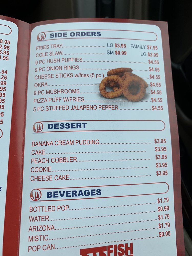 JJ Fish offers a tantalizing menu with options like the Cheeseburger Deluxe and an array of sandwiches, including the famed Philly Cheese Steak. Don’t miss their fish dinners, featuring whole catfish served alongside fries and coleslaw for a perfect palate experience.